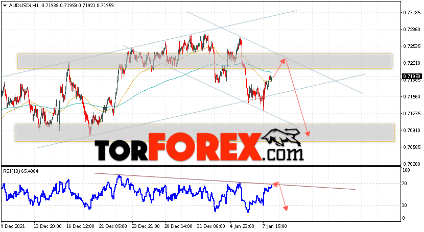 Таким образом, AUD/USD прогноз Форекс и аналитика на 11 января 2022 предполагает попытку теста уровня сопротивления вблизи области 0.7225. Далее, продолжение падения котировок пары ниже уровня 0.7065. Дополнительным сигналом в пользу снижения пары выступит тест линии тренда на индикаторе относительной силы. Отменой варианта падения станет сильный рост и пробой области 0.7275. Это укажет на продолжение подъёма котировок с потенциальной целью выше уровня 0.7535.