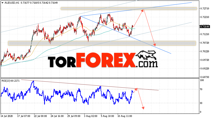 Таким образом, AUD/USD прогноз Форекс и аналитика на 13 августа 2020 предполагает попытку теста уровня сопротивления вблизи области 0.7255. Далее, продолжение падения котировок пары ниже уровня вблизи уровня 0.7020. Дополнительным сигналом в пользу снижения пары выступит тест линии тренда на индикаторе относительной силы. Отменой варианта падения станет сильный рост и пробой области 0.7345. Это укажет на продолжение подъёма котировок с потенциальной целью выше уровня 0.7585.