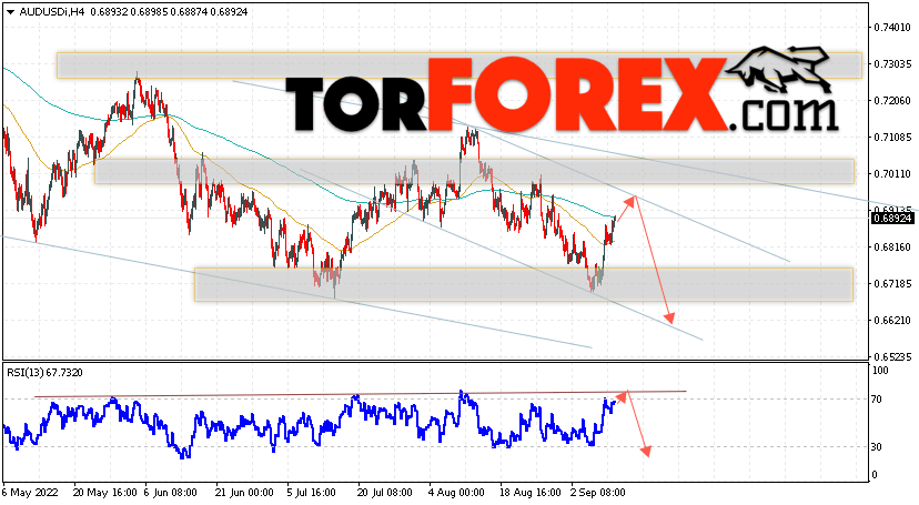 Таким образом, AUD/USD прогноз Форекс и аналитика на 13 сентября 2022 предполагает попытку теста уровня сопротивления вблизи области 0.6925. Далее, продолжение падения котировок пары ниже уровня 0.6625. Дополнительным сигналом в пользу снижения пары выступит тест линии тренда на индикаторе относительной силы. Отменой варианта падения станет сильный рост и пробой области 0.6995. Это укажет на продолжение подъёма котировок с потенциальной целью выше уровня 0.7245.