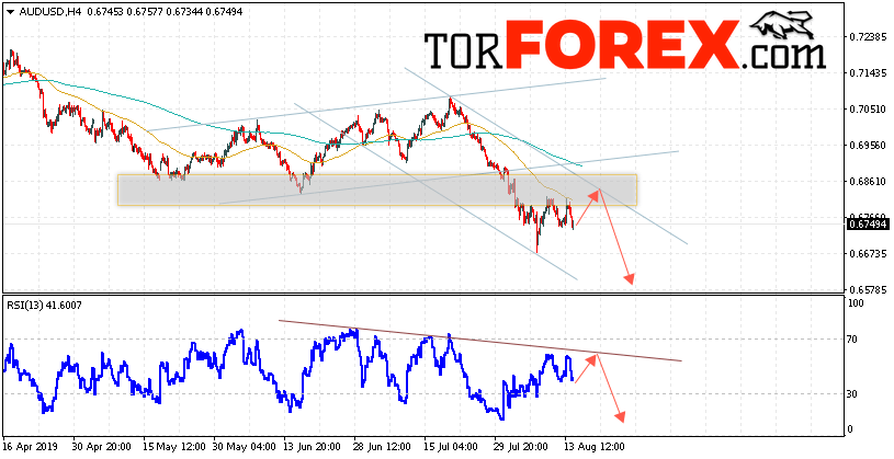 Таким образом, AUD/USD прогноз Форекс и аналитика на 15 августа 2019 предполагает попытку теста уровня сопротивления вблизи области 0.6780. Далее, продолжение падения котировок пары ниже уровня вблизи уровня 0.6580. Дополнительным сигналом в пользу снижения пары выступит формирование разворотной модели на индикаторе относительной силы. Отменой варианта падения станет сильный рост и пробой области 0.6875. Это укажет на продолжение роста котировок с потенциальной целью выше уровня 0.7065.