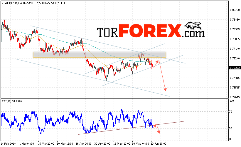 Таким образом, AUD/USD прогноз Форекс и аналитика на 15 июня 2018 предполагает попытку теста уровня сопротивления вблизи области 0.7580 и продолжение падения котировок ниже уровня 0.7340, дополнительным сигналом в пользу падения пары выступит тест линии тренда на индикаторе относительной силы, отменой варианта снижения пары станет сильный рост и пробой области 0.7650.