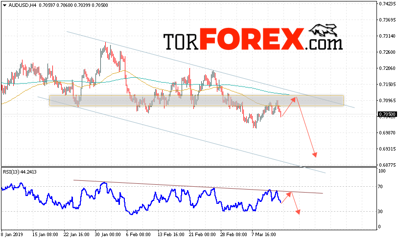 Таким образом, AUD/USD прогноз Форекс и аналитика на 15 марта 2019 предполагает попытку теста уровня сопротивления вблизи области 0.7095. Далее, продолжение падения котировок пары ниже уровня вблизи уровня 0.6900. Дополнительным сигналом в пользу снижения пары выступит тест линии тренда на индикаторе относительной силы. Отменой варианта падения станет сильный рост и пробой области 0.7155. Это укажет на продолжение подъёма котировок с потенциальной целью выше уровня 0.7275.
