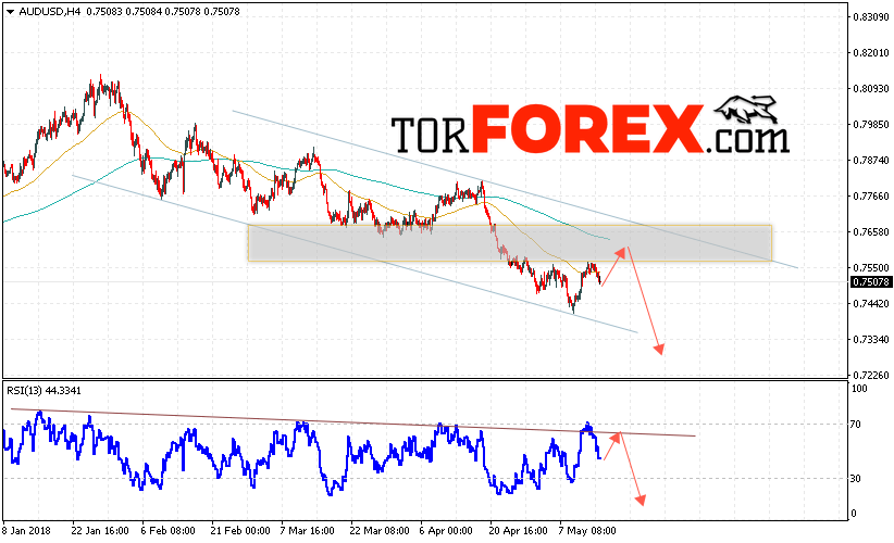 Таким образом, AUD/USD прогноз Форекс и аналитика на 16 мая 2018 предполагает попытку теста верхней границы канала вблизи области 0.7580 и продолжение падения котировок ниже уровня 0.7320, дополнительным сигналом в пользу падения пары выступит тест линии тренда на индикаторе относительной силы, отменой варианта снижения пары станет сильный рост и пробой области 0.7680.