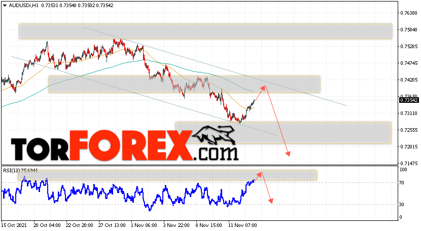 Таким образом, AUD/USD прогноз Форекс и аналитика на 16 ноября 2021 предполагает попытку теста уровня сопротивления вблизи области 0.7370. Далее, продолжение падения котировок пары ниже уровня 0.7125. Дополнительным сигналом в пользу снижения пары выступит тест линии тренда на индикаторе относительной силы. Отменой варианта падения станет сильный рост и пробой области 0.7505. Это укажет на продолжение подъёма котировок с потенциальной целью выше уровня 0.7645.