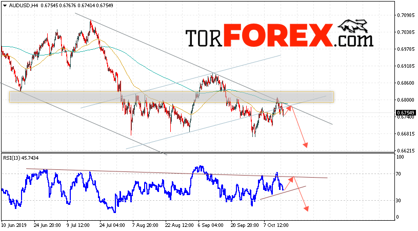 Дополнительным сигналом в пользу снижения пары AUD/USD выступит тест линии сопротивления на индикаторе относительной силы. Вторым сигналом станет отскок от верхней границы нисходящего канала. Отменой варианта падения котировок Австралийского Доллара на Форекс станет сильный рост и пробой уровня 0.6825. Это укажет на пробой области сопротивления и продолжение роста AUD/USD с потенциальной целью выше уровня 0.7095. Ожидать подтверждения падения пары стоит с пробоем области поддержки и закрытием котировок ниже уровня 0.6705.