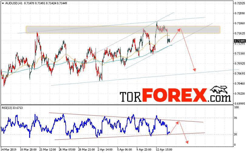 Таким образом, AUD/USD прогноз Форекс и аналитика на 17 апреля 2019 предполагает попытку теста уровня сопротивления вблизи области 0.7175. Далее, продолжение падения котировок пары ниже уровня вблизи уровня 0.7075. Дополнительным сигналом в пользу снижения пары выступит тест линии тренда на индикаторе относительной силы. Отменой варианта падения станет сильный рост и пробой области 0.7210. Это укажет на продолжение подъёма котировок с потенциальной целью выше уровня 0.7295.