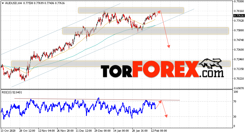 Таким образом, AUD/USD прогноз Форекс и аналитика на 17 февраля 2021 предполагает попытку теста уровня сопротивления вблизи области 0.7815. Далее, продолжение падения котировок пары ниже уровня 0.7365. Дополнительным сигналом в пользу снижения пары выступит тест линии тренда на индикаторе относительной силы. Отменой варианта падения станет сильный рост и пробой области 0.7875. Это укажет на продолжение подъёма котировок с потенциальной целью выше уровня 0.7985.