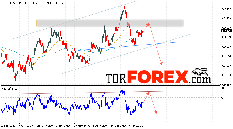 Таким образом, AUD/USD прогноз Форекс и аналитика на 17 января 2020 предполагает попытку теста уровня сопротивления вблизи области 0.6955. Далее, продолжение падения котировок пары ниже уровня вблизи уровня 0.6755. Дополнительным сигналом в пользу снижения пары выступит тест линии сопротивления на индикаторе относительной силы. Отменой варианта падения станет сильный рост и пробой области 0.7035. Это укажет на продолжение роста котировок с потенциальной целью выше уровня 0.7305.