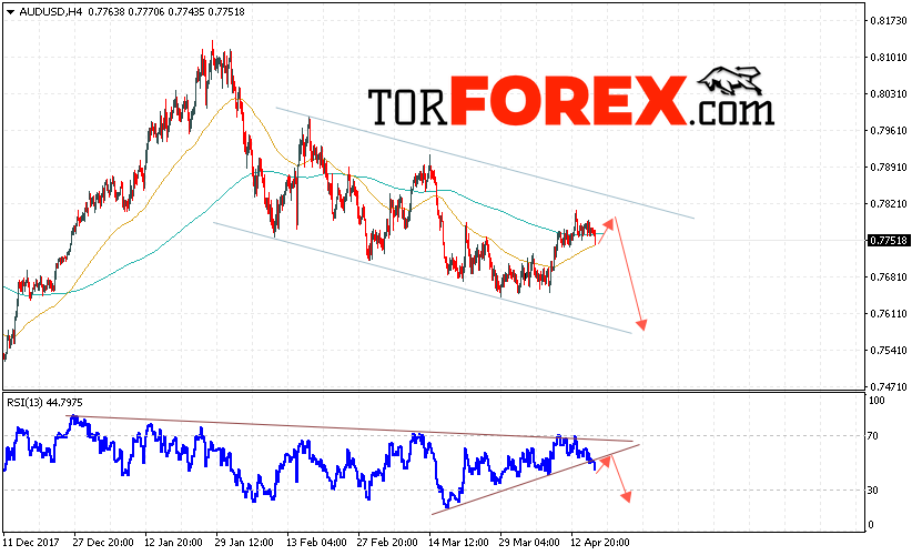 Таким образом, AUD/USD прогноз Форекс и аналитика на 19 апреля 2018 предполагает попытку теста уровня сопротивления вблизи области 0.7780 и продолжение падения котировок ниже уровня 0.7600, дополнительным сигналом в пользу падения пары выступит тест линии тренда на индикаторе относительной силы, отменой варианта снижения пары станет сильный рост и пробой области 0.7830.