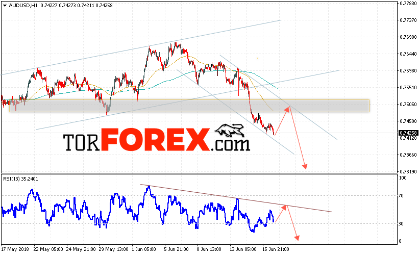 Таким образом, AUD/USD прогноз Форекс и аналитика на 19 июня 2018 предполагает попытку теста уровня сопротивления вблизи области 0.7510 и продолжение падения котировок ниже уровня 0.7320, дополнительным сигналом в пользу падения пары выступит тест линии тренда на индикаторе относительной силы, отменой варианта снижения пары станет сильный рост и пробой области 0.7540.