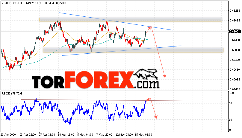 Таким образом, AUD/USD прогноз Форекс и аналитика на 19 мая 2020 предполагает попытку теста уровня сопротивления вблизи области 0.6525. Далее, продолжение падения котировок пары ниже уровня вблизи уровня 0.6215. Дополнительным сигналом в пользу снижения пары выступит тест линии тренда на индикаторе относительной силы. Отменой варианта падения станет сильный рост и пробой области 0.6575. Это укажет на продолжение подъёма котировок с потенциальной целью выше уровня 0.6775.
