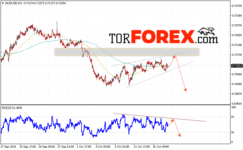 Таким образом, AUD/USD прогноз Форекс и аналитика на 19 октября 2018 предполагает попытку теста уровня сопротивления вблизи области 0.7170 и продолжение падения котировок пары ниже уровня 0.7005, дополнительным сигналом в пользу снижения пары выступит тест линии тренда на индикаторе относительной силы, отменой варианта падения пары станет сильный рост и пробой области 0.7200, что укажет на продолжение роста.