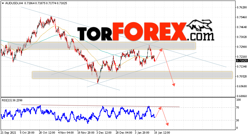 Таким образом, AUD/USD прогноз Форекс и аналитика на 19 января 2022 предполагает попытку теста уровня сопротивления вблизи области 0.7325. Далее, продолжение падения котировок пары ниже уровня 0.6965. Дополнительным сигналом в пользу снижения пары выступит тест линии тренда на индикаторе относительной силы. Отменой варианта падения станет сильный рост и пробой области 0.7395. Это укажет на продолжение подъёма котировок с потенциальной целью выше уровня 0.7645.