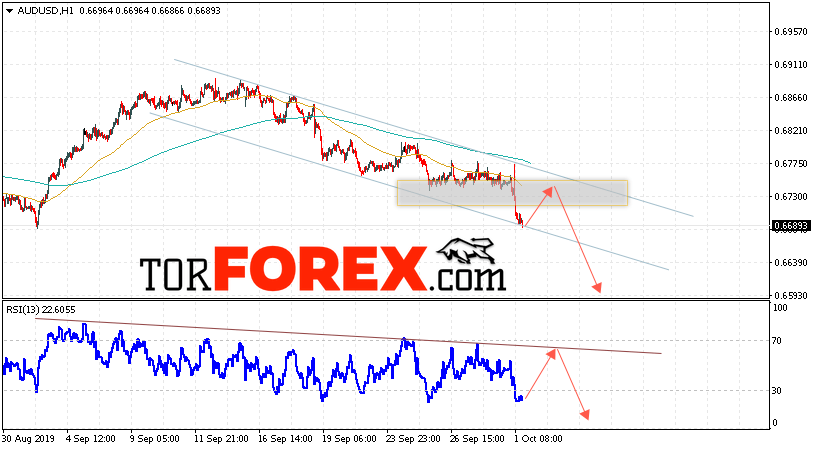 Таким образом, AUD/USD прогноз Форекс и аналитика на 2 октября 2019 предполагает попытку теста уровня сопротивления вблизи области 0.6730. Далее, продолжение падения котировок пары ниже уровня вблизи уровня 0.6595. Дополнительным сигналом в пользу снижения пары выступит тест линии сопротивления на индикаторе относительной силы. Отменой варианта падения станет сильный рост и пробой области 0.6785. Это укажет на продолжение подъёма котировок с потенциальной целью выше уровня 0.7105.
