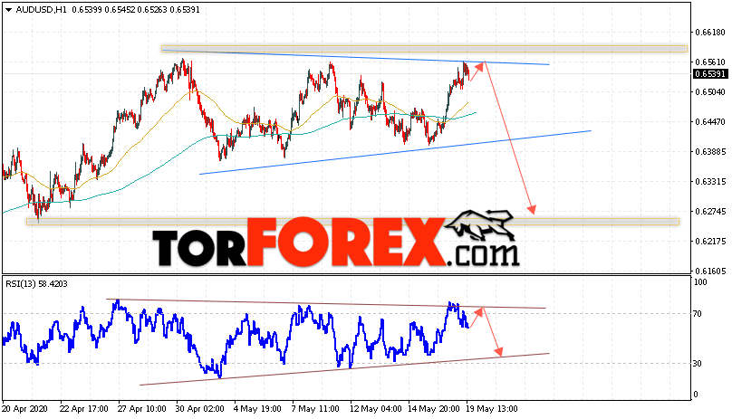 Таким образом, AUD/USD прогноз Форекс и аналитика на 20 мая 2020 предполагает попытку теста уровня сопротивления вблизи области 0.6565. Далее, продолжение падения котировок пары ниже уровня вблизи уровня 0.6285. Дополнительным сигналом в пользу снижения пары выступит тест линии тренда на индикаторе относительной силы. Отменой варианта падения станет сильный рост и пробой области 0.6635. Это укажет на продолжение подъёма котировок с потенциальной целью выше уровня 0.6805.