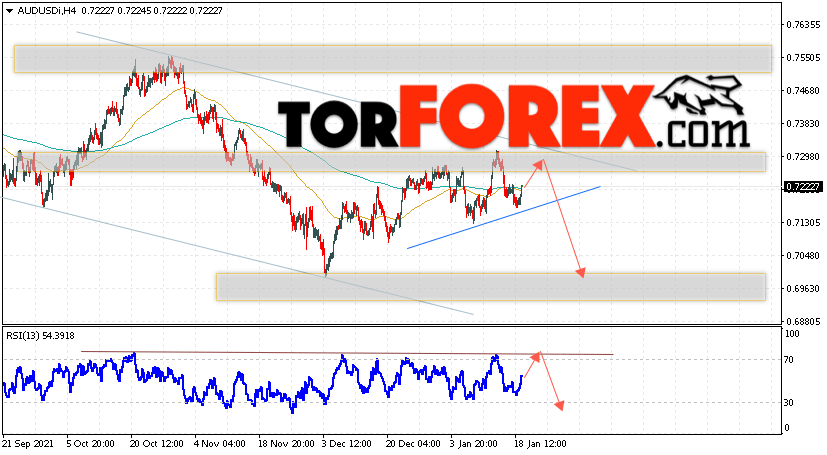 Таким образом, AUD/USD прогноз Форекс и аналитика на 20 января 2022 предполагает попытку теста уровня сопротивления вблизи области 0.7285. Далее, продолжение падения котировок пары ниже уровня 0.6985. Дополнительным сигналом в пользу снижения пары выступит тест линии тренда на индикаторе относительной силы. Отменой варианта падения станет сильный рост и пробой области 0.7395. Это укажет на продолжение подъёма котировок с потенциальной целью выше уровня 0.7645.