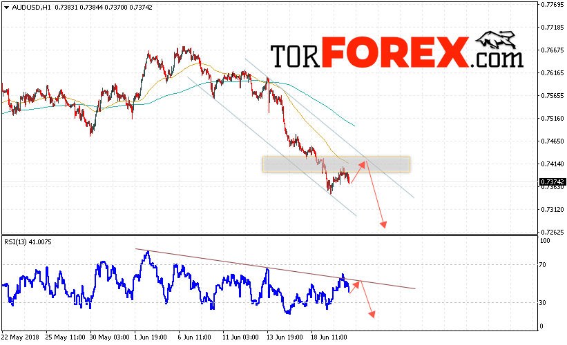 Таким образом, AUD/USD прогноз Форекс и аналитика на 21 июня 2018 предполагает попытку теста уровня сопротивления вблизи области 0.7420 и продолжение падения котировок ниже уровня 0.7265, дополнительным сигналом в пользу падения пары выступит тест линии тренда на индикаторе относительной силы, отменой варианта снижения пары станет сильный рост и пробой области 0.7450.