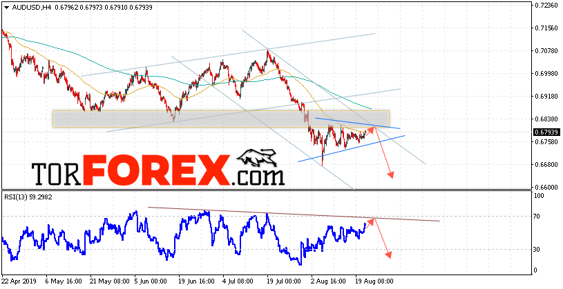 Таким образом, AUD/USD прогноз Форекс и аналитика на 22 августа 2019 предполагает попытку теста уровня сопротивления вблизи области 0.6810. Далее, продолжение падения котировок пары ниже уровня вблизи уровня 0.6645. Дополнительным сигналом в пользу снижения пары выступит формирование разворотной модели на индикаторе относительной силы. Отменой варианта падения станет сильный рост и пробой области 0.6855. Это укажет на продолжение роста котировок с потенциальной целью выше уровня 0.7015.