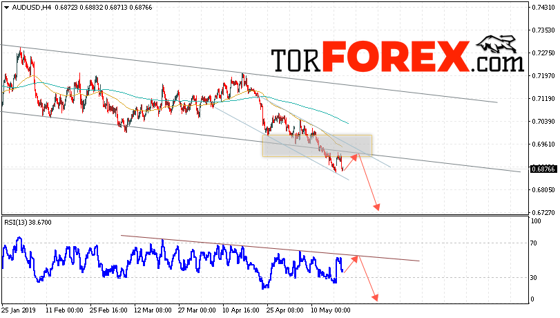 Таким образом, AUD/USD прогноз Форекс и аналитика на 22 мая 2019 предполагает попытку теста уровня сопротивления вблизи области 0.6950. Далее, продолжение падения котировок пары ниже уровня вблизи уровня 0.6790. Дополнительным сигналом в пользу снижения пары выступит тест линии тренда на индикаторе относительной силы. Отменой варианта падения станет сильный рост и пробой области 0.7000. Это укажет на продолжение подъёма котировок с потенциальной целью выше уровня 0.7115.