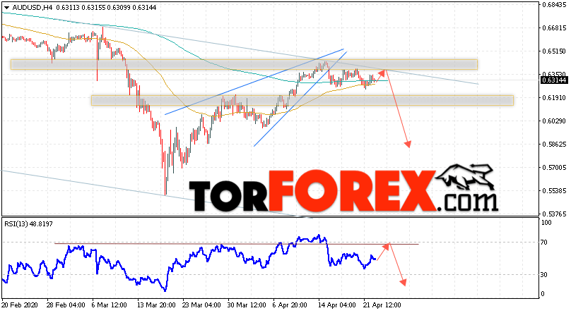 Таким образом, AUD/USD прогноз Форекс и аналитика на 23 апреля 2020 предполагает попытку теста уровня сопротивления вблизи области 0.6355. Далее, продолжение падения котировок пары ниже уровня вблизи уровня 0.5865. Дополнительным сигналом в пользу снижения пары выступит тест линии тренда на индикаторе относительной силы. Отменой варианта падения станет сильный рост и пробой области 0.6525. Это укажет на продолжение подъёма котировок с потенциальной целью выше уровня 0.6805.