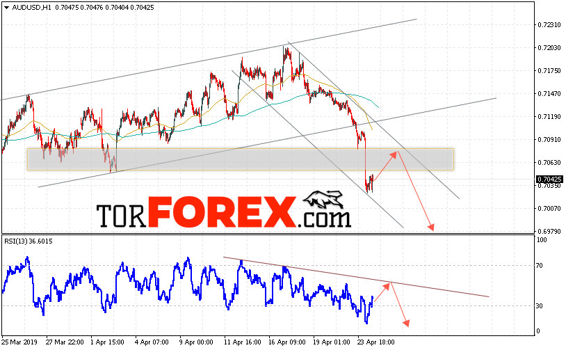 Таким образом, AUD/USD прогноз Форекс и аналитика на 25 апреля 2019 предполагает попытку теста уровня сопротивления вблизи области 0.7090. Далее, продолжение падения котировок пары ниже уровня вблизи уровня 0.6975. Дополнительным сигналом в пользу снижения пары выступит тест линии тренда на индикаторе относительной силы. Отменой варианта падения станет сильный рост и пробой области 0.7125. Это укажет на продолжение подъёма котировок с потенциальной целью выше уровня 0.7215.