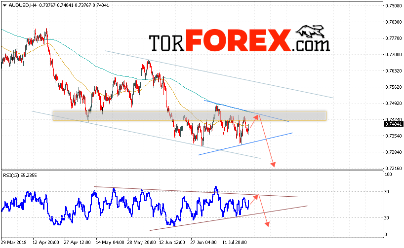 Таким образом, AUD/USD прогноз Форекс и аналитика на 25 июля 2018 предполагает попытку теста уровня сопротивления вблизи области 0.7435 и продолжение падения котировок пары ниже уровня 0.7220, дополнительным сигналом в пользу падения пары выступит формирование разворотной модели на индикаторе относительной силы, отменой варианта снижения пары станет сильный рост и пробой области 0.7465.