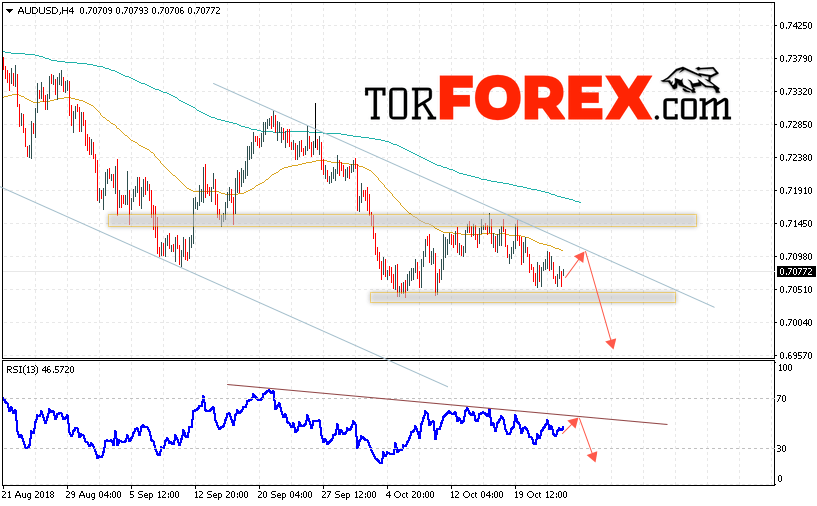 Таким образом, AUD/USD прогноз Форекс и аналитика на 26 октября 2018 предполагает попытку теста уровня сопротивления вблизи области 0.7105 и продолжение падения котировок пары ниже уровня 0.6965, дополнительным сигналом в пользу снижения пары выступит тест линии тренда на индикаторе относительной силы, отменой варианта падения пары станет сильный рост и пробой области 0.7130, что укажет на продолжение роста.