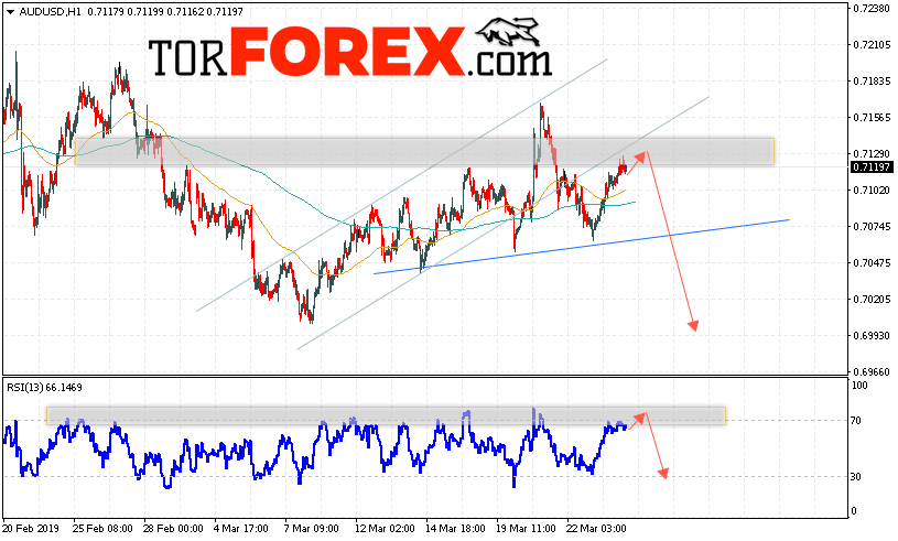 Таким образом, AUD/USD прогноз Форекс и аналитика на 27 марта 2019 предполагает попытку теста уровня сопротивления вблизи области 0.7135. Далее, продолжение падения котировок пары ниже уровня вблизи уровня 0.6990. Дополнительным сигналом в пользу снижения пары выступит тест линии тренда на индикаторе относительной силы. Отменой варианта падения станет сильный рост и пробой области 0.7180. Это укажет на продолжение подъёма котировок с потенциальной целью выше уровня 0.7295.