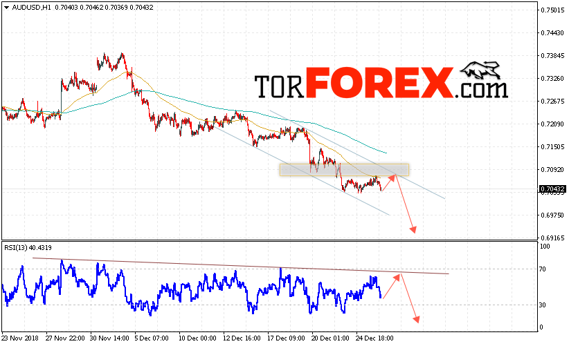 Таким образом, AUD/USD прогноз Форекс и аналитика на 28 декабря 2018 предполагает попытку теста уровня сопротивления вблизи области 0.7055. Далее, продолжение снижения котировок пары ниже уровня 0.6915. Дополнительным сигналом в пользу падения пары выступит тест линии тренда на индикаторе относительной силы. Отменой варианта снижения станет сильный рост и пробой области 0.7135. Это укажет на продолжение роста котировок.