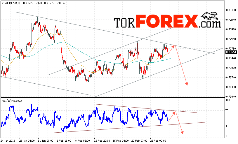Таким образом, AUD/USD прогноз Форекс и аналитика на 28 февраля 2019 предполагает попытку теста уровня сопротивления вблизи области 0.7180. Далее, продолжение падения котировок пары ниже уровня вблизи уровня 0.7035. Дополнительным сигналом в пользу падения пары выступит тест линии тренда на индикаторе относительной силы. Отменой варианта снижения станет сильный рост и пробой области 0.7235. Это укажет на продолжение подъёма котировок с потенциальной целью выше уровня 0.7325.