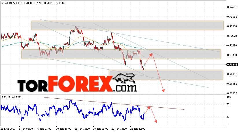 Таким образом, AUD/USD прогноз Форекс и аналитика на 28 января 2022 предполагает попытку теста уровня сопротивления вблизи области 0.7150. Далее, продолжение падения котировок пары ниже уровня 0.6935. Дополнительным сигналом в пользу снижения пары выступит тест линии тренда на индикаторе относительной силы. Отменой варианта падения станет сильный рост и пробой области 0.7225. Это укажет на продолжение подъёма котировок с потенциальной целью выше уровня 0.7405.