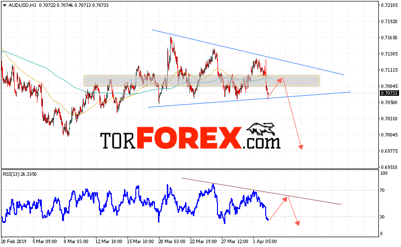 Таким образом, AUD/USD прогноз Форекс и аналитика на 3 апреля 2019 предполагает попытку теста уровня сопротивления вблизи области 0.7105. Далее, продолжение падения котировок пары ниже уровня вблизи уровня 0.6975. Дополнительным сигналом в пользу снижения пары выступит тест линии тренда на индикаторе относительной силы. Отменой варианта падения станет сильный рост и пробой области 0.7145. Это укажет на продолжение подъёма котировок с потенциальной целью выше уровня 0.7275.