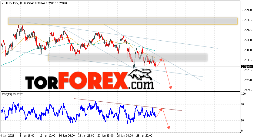 Таким образом, AUD/USD прогноз Форекс и аналитика на 3 февраля 2021 предполагает попытку теста уровня сопротивления вблизи области 0.7635. Далее, продолжение падения котировок пары ниже уровня 0.7475. Дополнительным сигналом в пользу снижения пары выступит тест линии тренда на индикаторе относительной силы. Отменой варианта падения станет сильный рост и пробой области 0.7675. Это укажет на продолжение роста котировок с потенциальной целью выше уровня 0.7975.