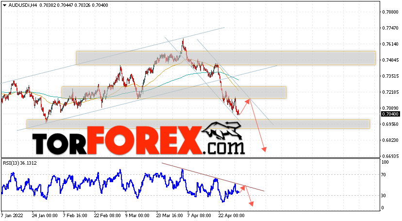 Таким образом, AUD/USD прогноз Форекс и аналитика на 3 мая 2022 предполагает попытку теста уровня сопротивления вблизи области 0.7115. Далее, продолжение падения котировок пары ниже уровня 0.6745. Дополнительным сигналом в пользу снижения пары выступит тест линии тренда на индикаторе относительной силы. Отменой варианта падения станет сильный рост и пробой области 0.7255. Это укажет на продолжение подъёма котировок с потенциальной целью выше уровня 0.7505.