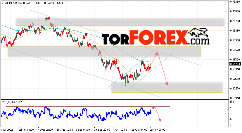 Таким образом, AUD/USD прогноз Форекс и аналитика на 3 ноября 2022 предполагает попытку теста уровня сопротивления вблизи области 0.6545. Далее, продолжение падения котировок пары ниже уровня 0.6105. Дополнительным сигналом в пользу снижения пары выступит тест линии тренда на индикаторе относительной силы. Отменой варианта падения станет сильный рост и пробой области 0.6755. Это укажет на продолжение подъёма котировок с потенциальной целью выше уровня 0.7065.