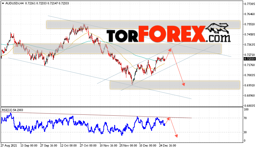 Таким образом, AUD/USD прогноз Форекс и аналитика на 30 декабря 2021 предполагает попытку теста уровня сопротивления вблизи области 0.7305. Далее, продолжение падения котировок пары ниже уровня 0.6995. Дополнительным сигналом в пользу снижения пары выступит тест линии тренда на индикаторе относительной силы. Отменой варианта падения станет сильный рост и пробой области 0.7435. Это укажет на продолжение подъёма котировок с потенциальной целью выше уровня 0.7675.