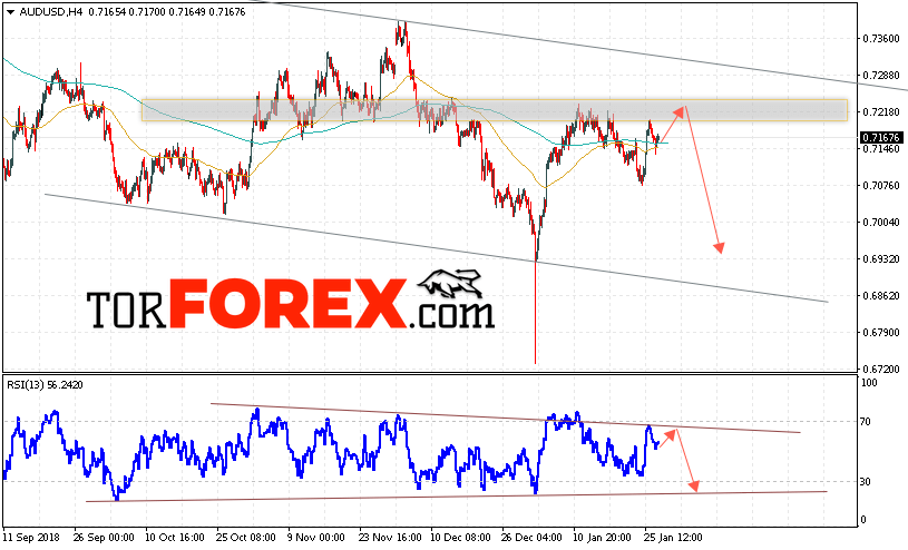 Таким образом, AUD/USD прогноз Форекс и аналитика на 30 января 2019 предполагает попытку теста уровня сопротивления вблизи области 0.7220. Далее, продолжение падения котировок пары ниже уровня вблизи уровня 0.6935. Дополнительным сигналом в пользу падения пары выступит тест линии тренда на индикаторе относительной силы. Отменой варианта снижения станет сильный рост и пробой области 0.7285. Это укажет на продолжение подъёма котировок с потенциальной целью выше уровня 0.7375.