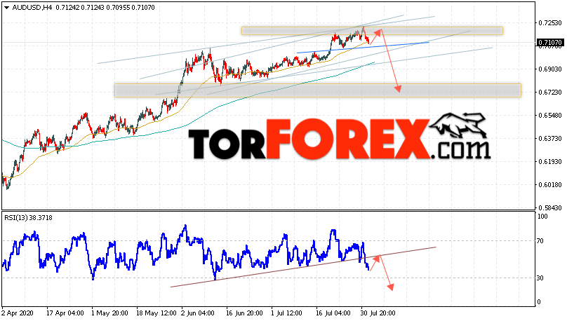 Таким образом, AUD/USD прогноз Форекс и аналитика на 4 августа 2020 предполагает попытку теста уровня сопротивления вблизи области 0.7135. Далее, продолжение падения котировок пары ниже уровня вблизи уровня 0.6725. Дополнительным сигналом в пользу снижения пары выступит тест линии тренда на индикаторе относительной силы. Отменой варианта падения станет сильный рост и пробой области 0.7275. Это укажет на продолжение подъёма котировок с потенциальной целью выше уровня 0.7505.