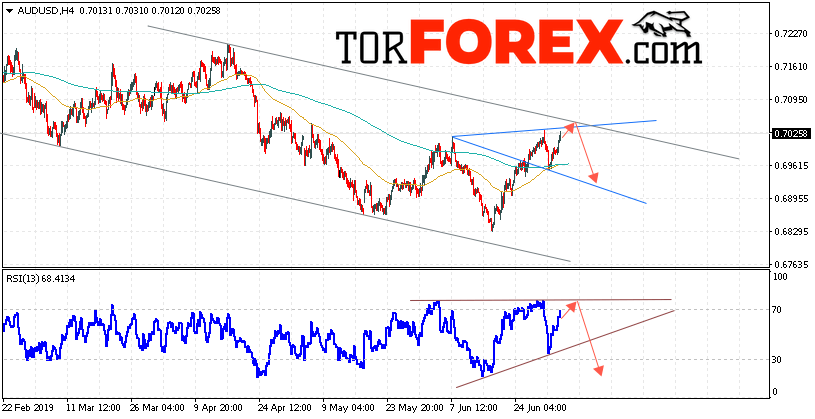 Таким образом, AUD/USD прогноз Форекс и аналитика на 4 июля 2019 предполагает попытку теста уровня сопротивления вблизи области 0.7050. Далее, продолжение падения котировок пары ниже уровня вблизи уровня 0.6905. Дополнительным сигналом в пользу снижения пары выступит тест линии тренда на индикаторе относительной силы. Отменой варианта падения станет сильный рост и пробой области 0.7095. Это укажет на продолжение подъёма котировок с потенциальной целью выше уровня 0.7195.