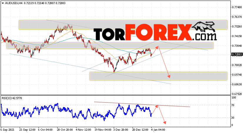 Таким образом, AUD/USD прогноз Форекс и аналитика на 5 января 2022 предполагает попытку теста уровня сопротивления вблизи области 0.7295. Далее, продолжение падения котировок пары ниже уровня 0.6945. Дополнительным сигналом в пользу снижения пары выступит тест линии тренда на индикаторе относительной силы. Отменой варианта падения станет сильный рост и пробой области 0.7425. Это укажет на продолжение подъёма котировок с потенциальной целью выше уровня 0.7585.