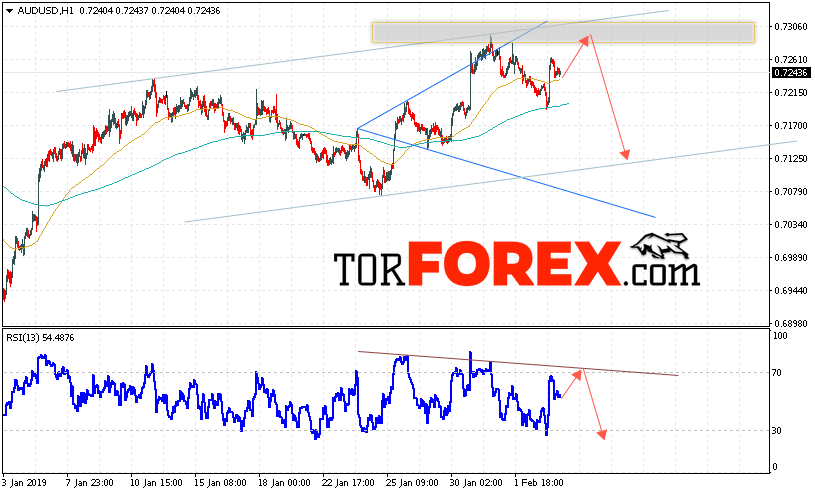 Таким образом, AUD/USD прогноз Форекс и аналитика на 6 февраля 2019 предполагает попытку теста уровня сопротивления вблизи области 0.7300. Далее, продолжение падения котировок пары ниже уровня вблизи уровня 0.7125. Дополнительным сигналом в пользу падения пары выступит тест линии тренда на индикаторе относительной силы. Отменой варианта снижения станет сильный рост и пробой области 0.7335. Это укажет на продолжение подъёма котировок с потенциальной целью выше уровня 0.7425.