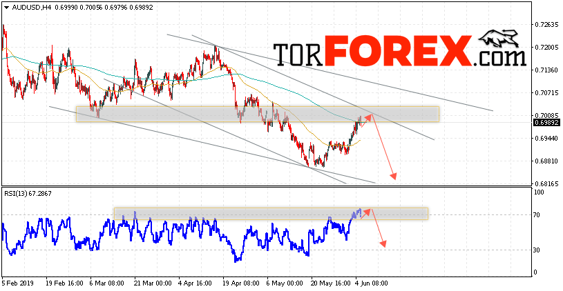 Таким образом, AUD/USD прогноз Форекс и аналитика на 6 июня 2019 предполагает попытку теста уровня сопротивления вблизи области 0.7010. Далее, продолжение падения котировок пары ниже уровня вблизи уровня 0.6815. Дополнительным сигналом в пользу снижения пары выступит тест линии тренда на индикаторе относительной силы. Отменой варианта падения станет сильный рост и пробой области 0.7055. Это укажет на продолжение подъёма котировок с потенциальной целью выше уровня 0.7165.