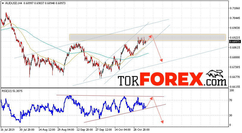 Таким образом, AUD/USD прогноз Форекс и аналитика на 7 ноября 2019 предполагает попытку теста уровня сопротивления вблизи области 0.6925. Далее, продолжение падения котировок пары ниже уровня вблизи уровня 0.6795. Дополнительным сигналом в пользу снижения пары выступит тест линии сопротивления на индикаторе относительной силы. Отменой варианта снижения станет сильный рост и пробой области 0.6995. Это укажет на продолжение подъёма котировок с потенциальной целью выше уровня 0.7125.
