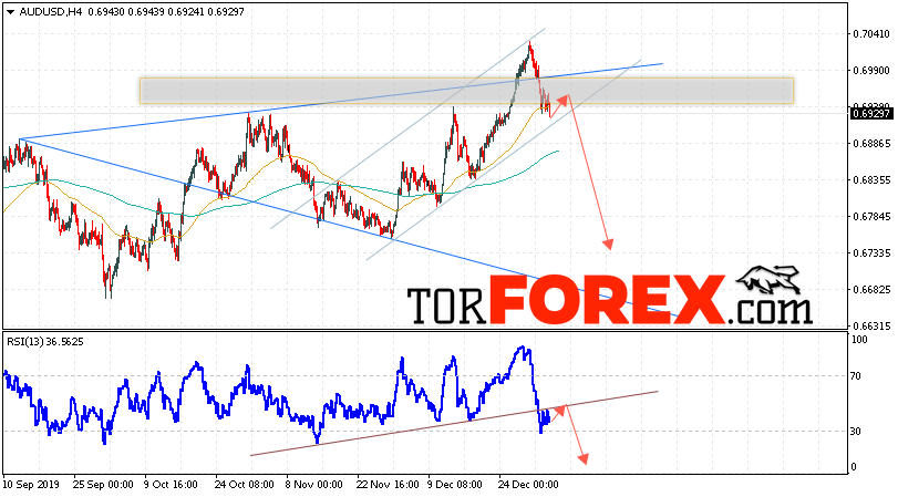 Таким образом, AUD/USD прогноз Форекс и аналитика на 7 января 2020 предполагает попытку теста уровня сопротивления вблизи области 0.6955. Далее, продолжение падения котировок пары ниже уровня вблизи уровня 0.6735. Дополнительным сигналом в пользу снижения пары выступит тест линии сопротивления на индикаторе относительной силы. Отменой варианта падения станет сильный рост и пробой области 0.7075. Это укажет на продолжение роста котировок с потенциальной целью выше уровня 0.7325.