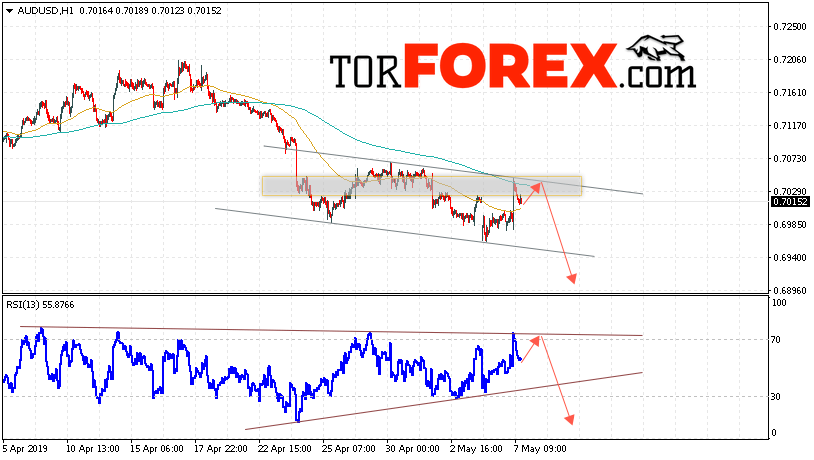 Таким образом, AUD/USD прогноз Форекс и аналитика на 8 мая 2019 предполагает попытку теста уровня сопротивления вблизи области 0.7035. Далее, продолжение падения котировок пары ниже уровня вблизи уровня 0.6890. Дополнительным сигналом в пользу снижения пары выступит тест линии тренда на индикаторе относительной силы. Отменой варианта падения станет сильный рост и пробой области 0.7085. Это укажет на продолжение подъёма котировок с потенциальной целью выше уровня 0.7175.