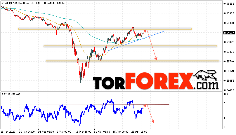 Таким образом, AUD/USD прогноз Форекс и аналитика на 8 мая 2020 предполагает попытку теста уровня сопротивления вблизи области 0.6535. Далее, продолжение падения котировок пары ниже уровня вблизи уровня 0.5965. Дополнительным сигналом в пользу снижения пары выступит тест линии тренда на индикаторе относительной силы. Отменой варианта падения станет сильный рост и пробой области 0.6595. Это укажет на продолжение подъёма котировок с потенциальной целью выше уровня 0.6885.