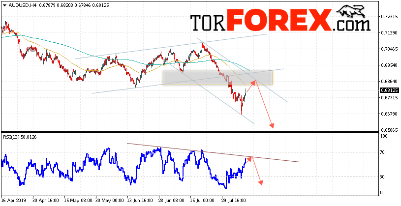 Таким образом, AUD/USD прогноз Форекс и аналитика на 9 августа 2019 предполагает попытку теста уровня сопротивления вблизи области 0.6865. Далее, продолжение падения котировок пары ниже уровня вблизи уровня 0.6575. Дополнительным сигналом в пользу снижения пары выступит формирование разворотной модели на индикаторе относительной силы. Отменой варианта падения станет сильный рост и пробой области 0.6925. Это укажет на продолжение роста котировок с потенциальной целью выше уровня 0.7065.