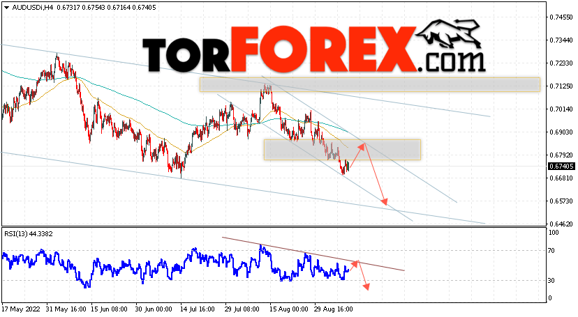 Таким образом, AUD/USD прогноз Форекс и аналитика на 9 сентября 2022 предполагает попытку теста уровня сопротивления вблизи области 0.6845. Далее, продолжение падения котировок пары ниже уровня 0.6575. Дополнительным сигналом в пользу снижения пары выступит тест линии тренда на индикаторе относительной силы. Отменой варианта падения станет сильный рост и пробой области 0.6945. Это укажет на продолжение подъёма котировок с потенциальной целью выше уровня 0.7235.