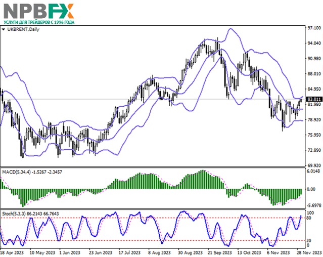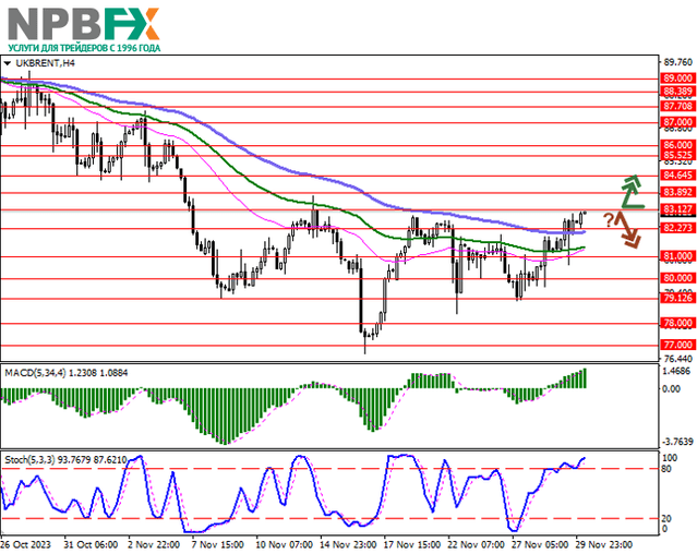 Цены на нефть марки Brent Crude Oil тестируют отметку 83.00 на пробой вверх в преддверии заседания ОПЕК+ сегодня в 12:00 (GMT+2).