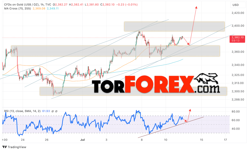Цена Золота прогноз XAU/USD на 12 июля 2024
